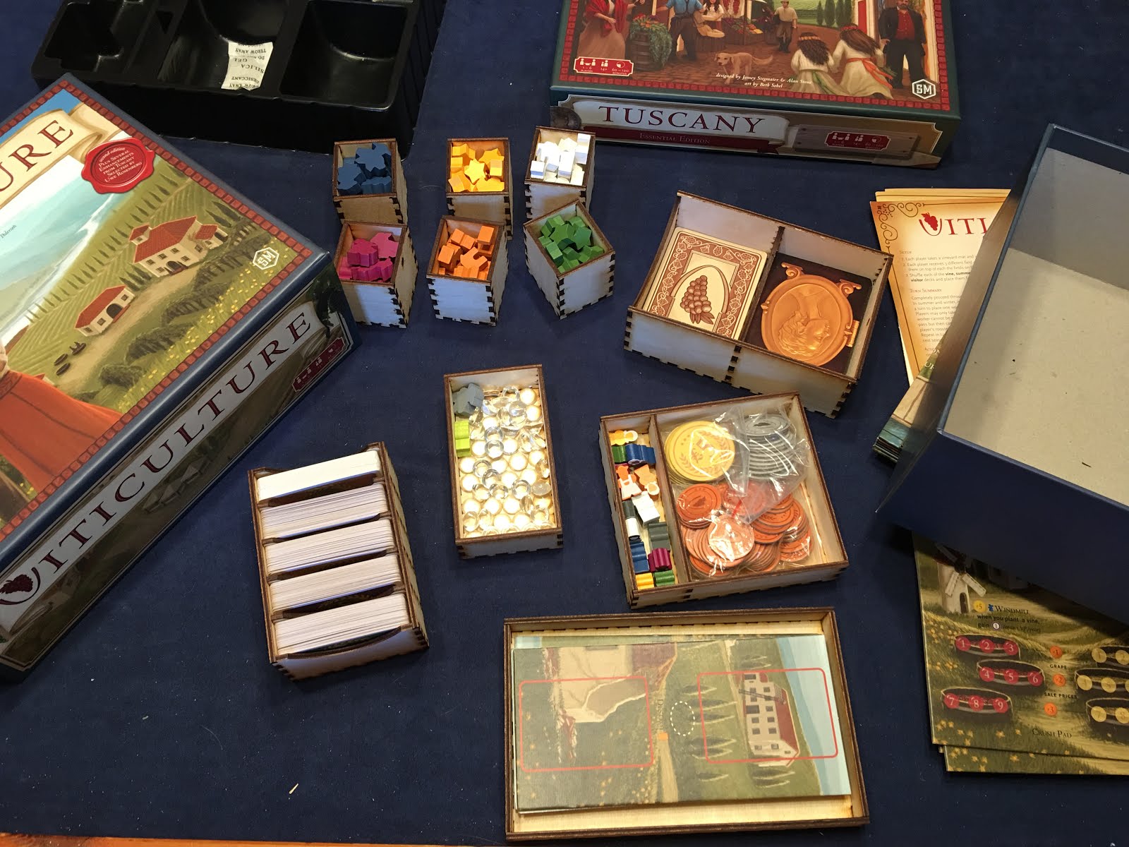 Yesterday we finished up a session of one of my favorite games, Viticulture, with the “Tuscany” expansion I received for XMas. I found myself wishing that everything would fit in one box. Glowforge to the rescue!